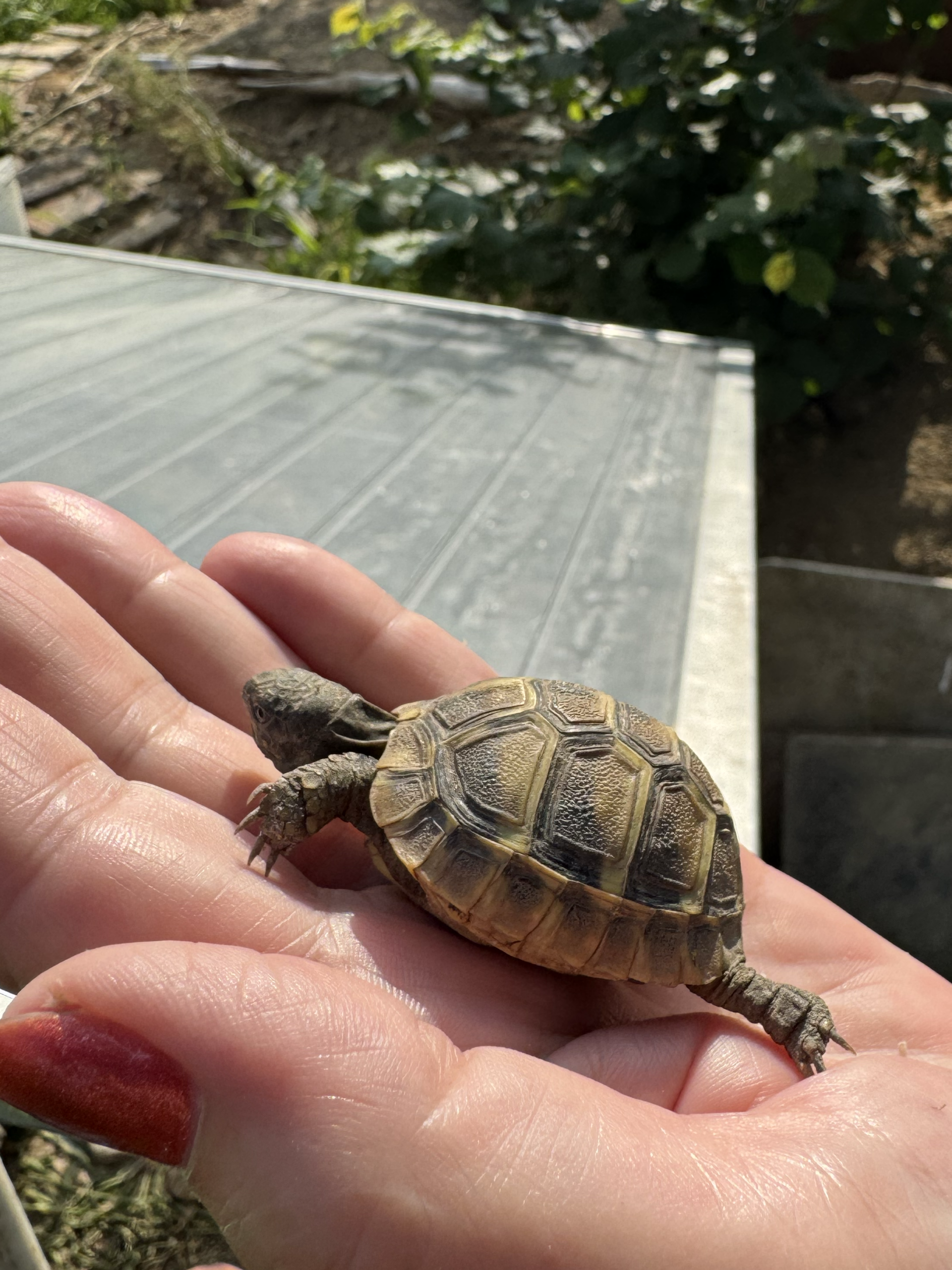 Auch Schlüpflinge und Jungtiere, wie hier bei der Schildkrötenhilfe Witten, benötigen bereits ein Frühbeet und Freigehege, wobei man zunächst mit ungefähr 1 m2 beginnen kann, damit man die Schildkröte auch wiederfinden kann.