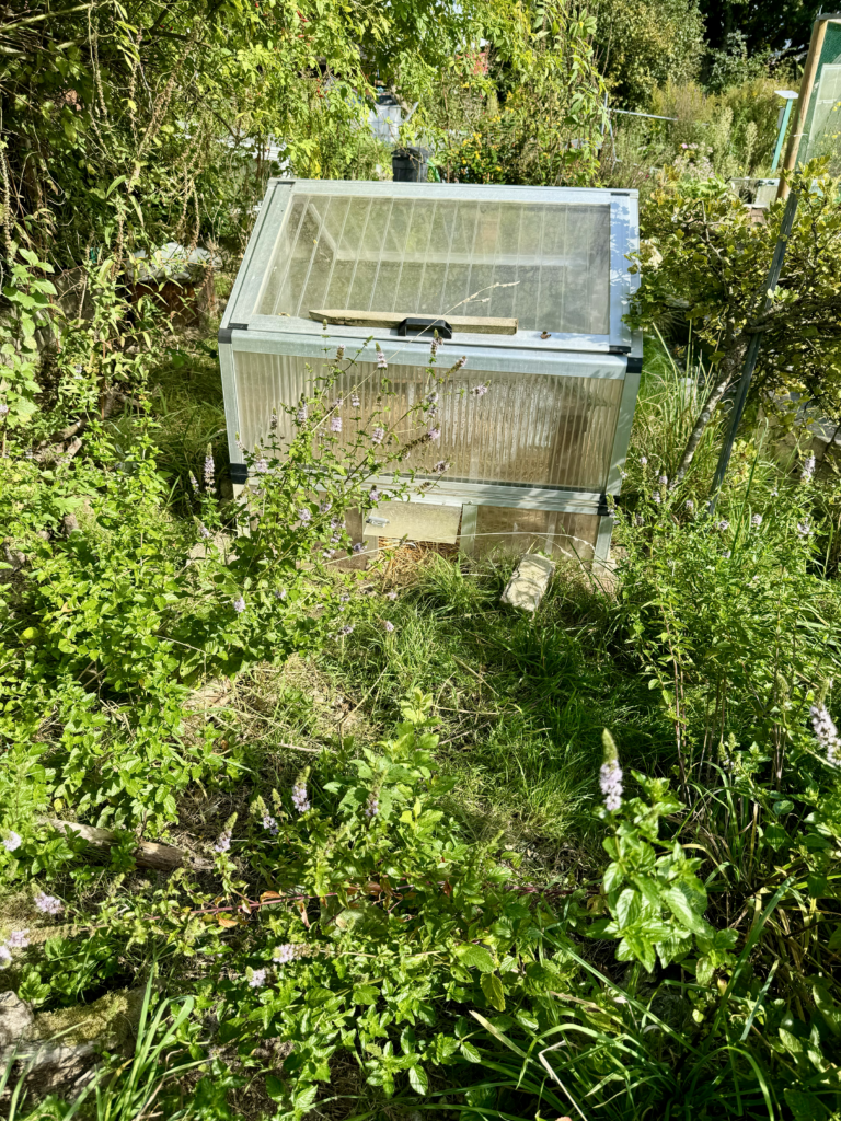 Kompaktes, gegen Fressfeinde gesicherte Freigehege und Frühbeet für Jungtiere und Schlüpflinge bei der Schildkrötenhilfe Witten e.V..