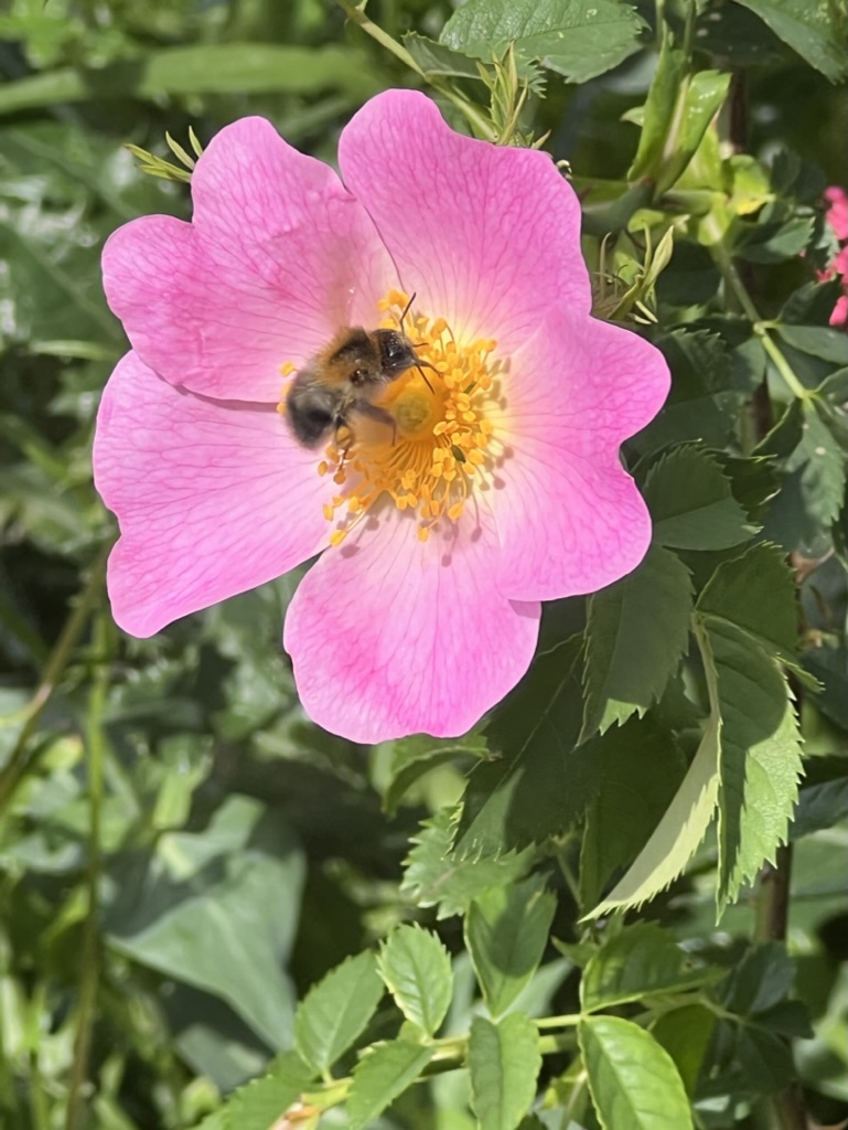 Die Hundsrose ist wie alle Rosen ungiftig und liefert über verschiedene Pflanzenteile hinweg verwertbares Futter: