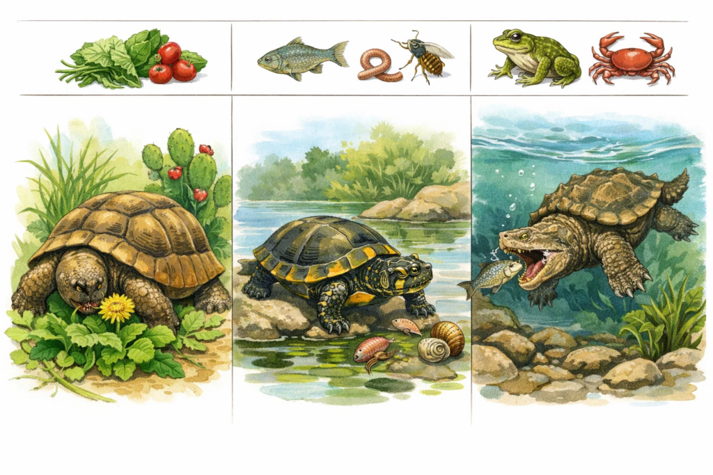 Schildkröten zeigen eine erstaunliche Vielfalt in ihrer Ernährung – von Pflanzenfressern bis zu spezialisierten Jägern im Wasser.