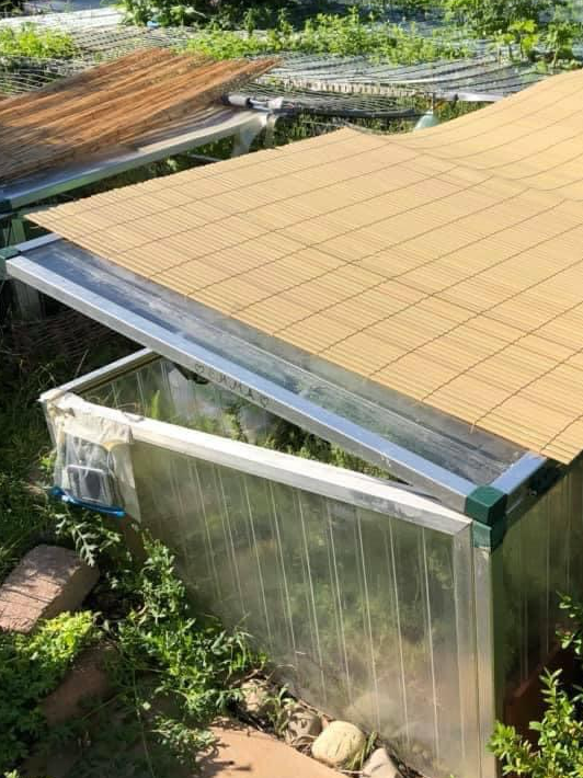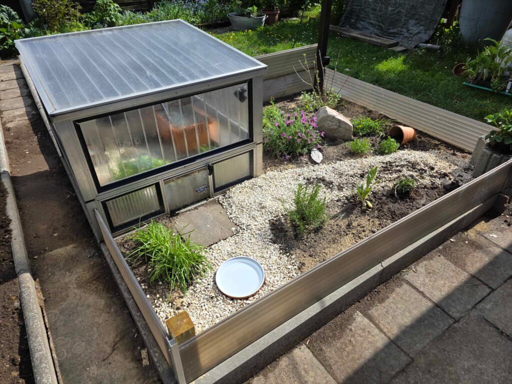 Dazu benötigt man ein hochwertiges, möglichst großes und stabiles Frühbeet aus 16 mm Hohlkammerplatten, am besten aus UV-durchlässigem Plexiglas-Alltop©. Es gibt Frühbeete, die bereits vormontiert auf einer Palette geliefert werden (Beckmann, Soli Animalis) oder auch über eine integrierte Überwinterungsgrube mit „Fressfeindeschutz“ verfügen (Soli Animalis).