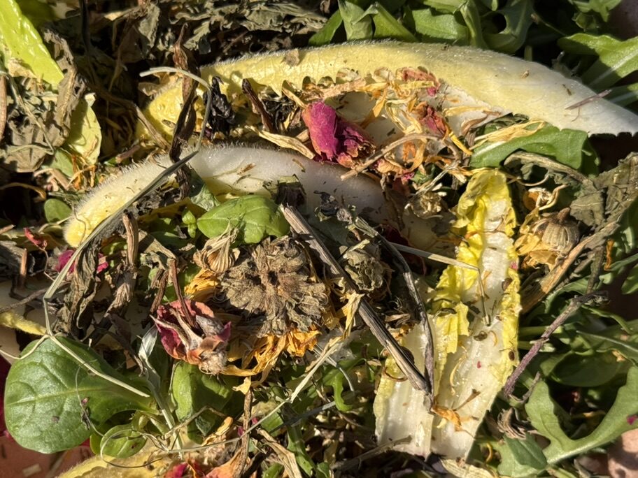 - Sollten noch wenige Wildkräuter zu finden sein, z.B bei einer dichten Schneedecke, können ergänzungsweise zeitweise Bittersalate gefüttert werden, die aufgrund ihrer Faserarmut mit ballaststoffreichen getrockneten Wildkräutern und Blüten aufgewertet werden (z.B. Agrobs Fibre zum Überstreuen)