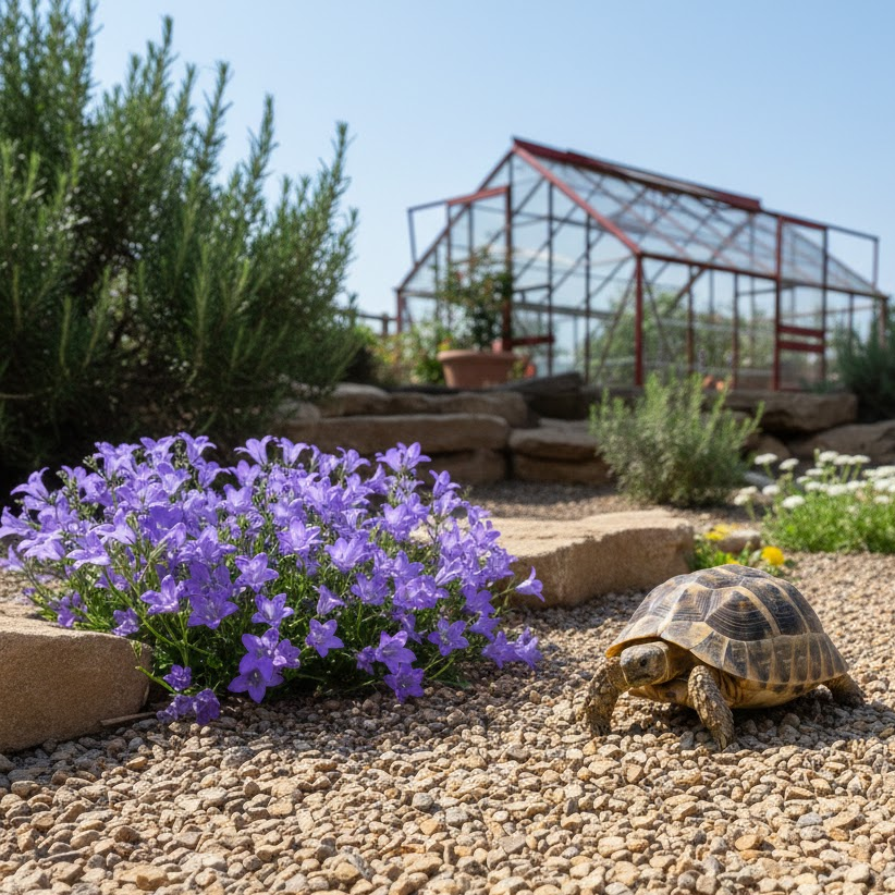 Viele Glockenblumenarten – besonders Wildarten – keimen am zuverlässigsten auf offenen, lückigen Bodenstellen, was gut zu naturnahen Schildkrötengehegen mit Kalkschotter passt.