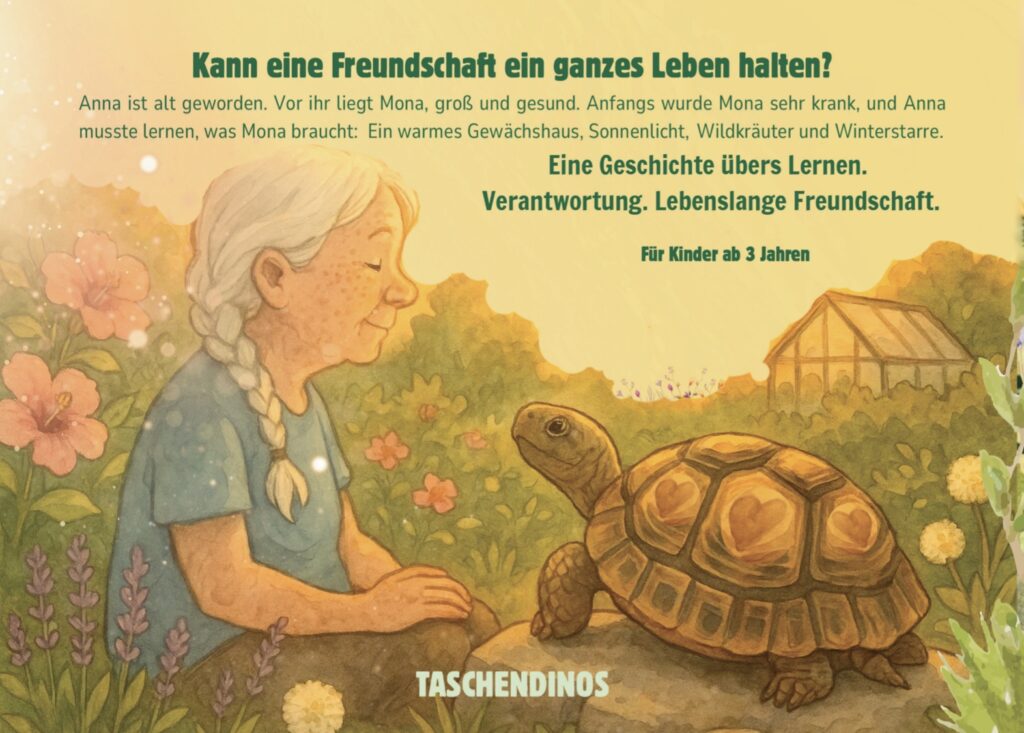 - ein pädagogisches Taschendinos Kinderbuch „Anna und Mona – Freunde fürs Leben“ rund um die artgerechte Landschildkrötenhaltung,