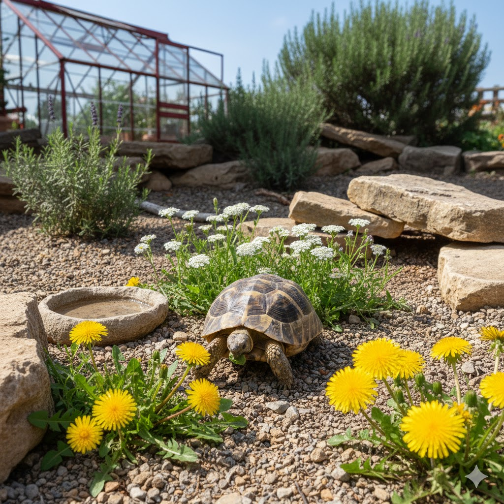 Schafgarbe und Löwenzahn gehören zu den klassischen Lichtkeimern im Schildkrötengehege.
