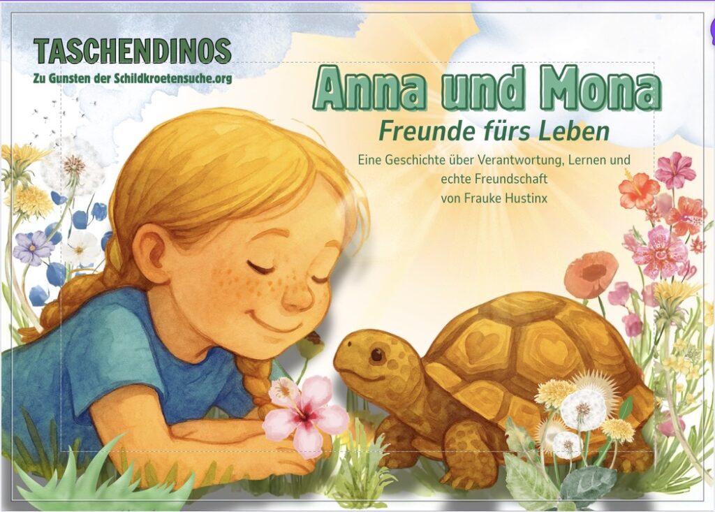 Das Taschendinos – Anna und Mona: Freunde fürs Leben ist ein einfühlsames Kinderbuch, das auf kindgerechte Weise von Freundschaft, Verantwortung und Rücksichtnahme erzählt. Im Mittelpunkt stehen Anna und die Landschildkröte Mona, deren Beziehung zeigt, wie wichtig Geduld, Verständnis und Respekt gegenüber Tieren sind. Die Geschichte vermittelt Wissen und Werte spielerisch und ohne Belehrung und eignet sich besonders, um Kinder behutsam an das Thema Landschildkrötenhaltung und Tierwohl heranzuführen.
