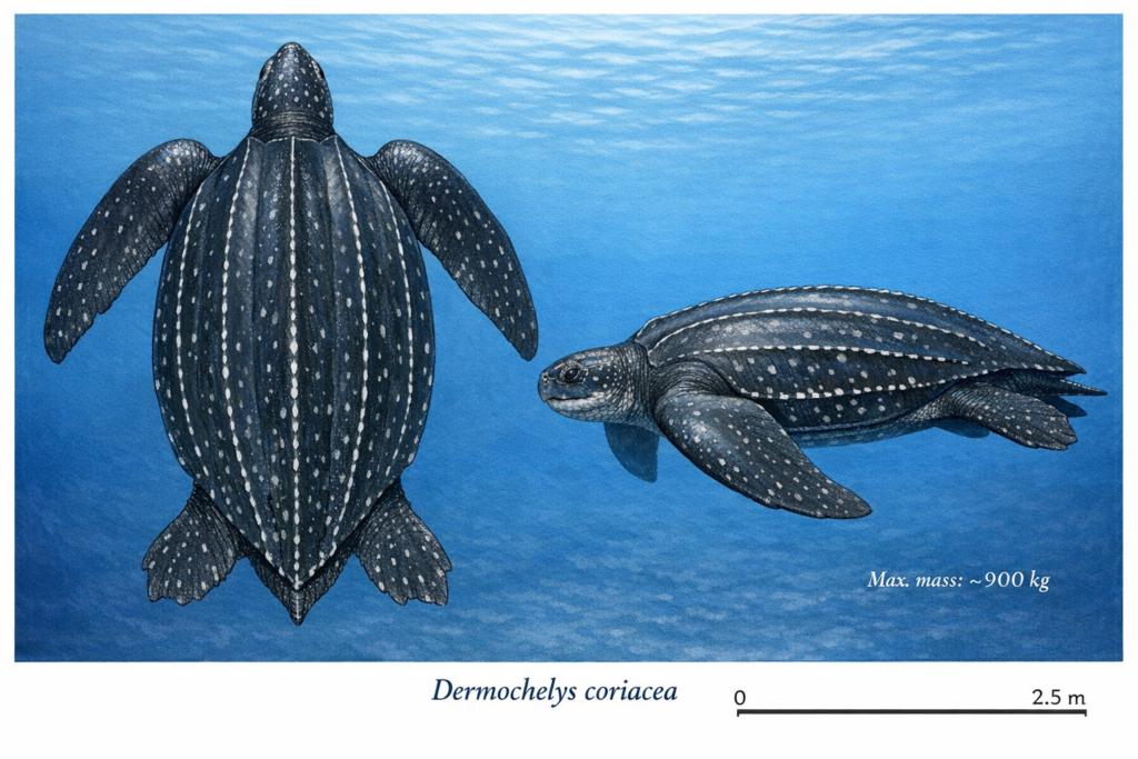 Die Lederschildkröten sind die weltweit größten Schildkröten, siehe auch im Artikel Besondere Fakten über Schildkröten.