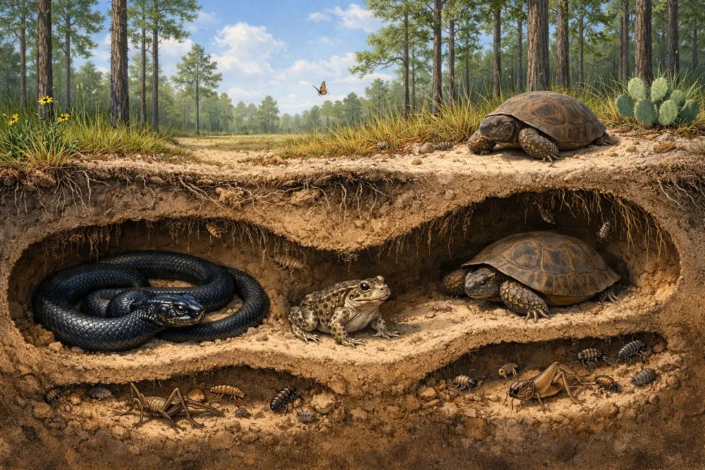 - Ökosystem-Ingenieure: Viele Schlüsselarten (wie die Gopherschildkröte oder der Biber) gestalten den Lebensraum physisch um und erschaffen so Nischen für Hunderte andere Arten.