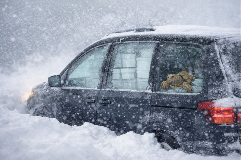 Doch dann versagte auch der Generator. Infolge dessen mussten wir um 4 Uhr morgens alle Tiere – inklusive unserer großen Landschildkröte Wall-E – erneut umsetzen: Dieses Mal in unseren Van, mitten im kalten Wind und Schlamm, und den Motor bis zum Mittag laufen lassen, damit sie nicht auskühlen.