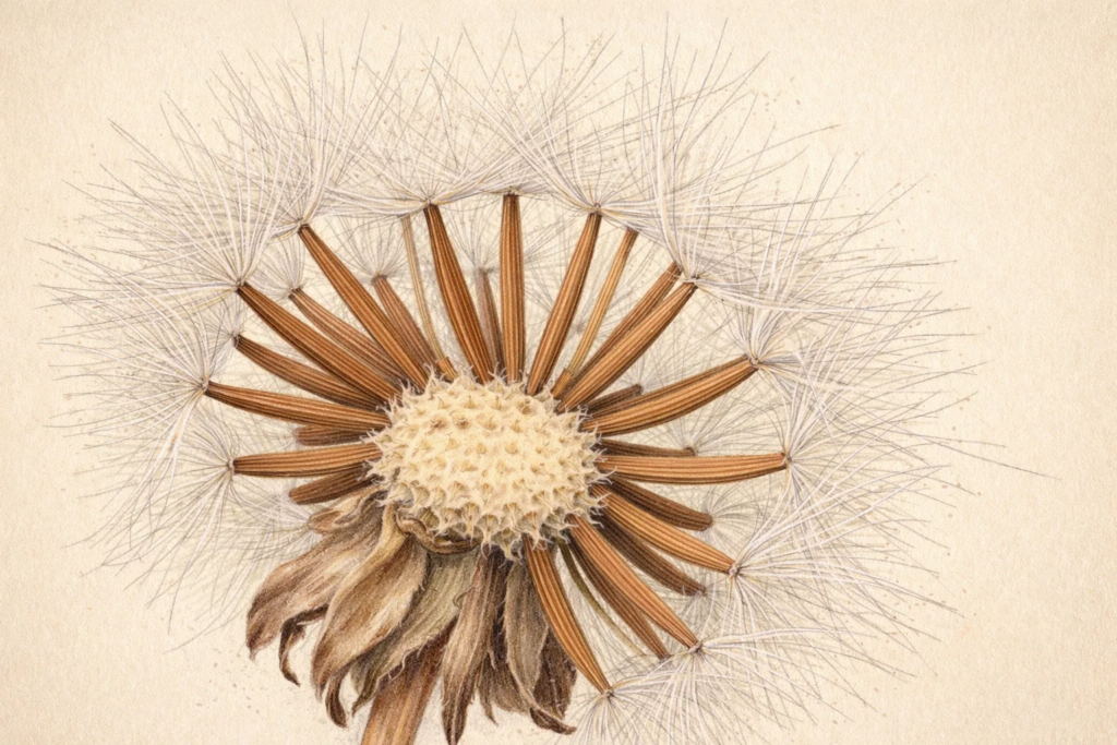 Nach der Blüte bilden sich längliche Achänen mit weißem Pappus, die durch Wind verbreitet werden, ähnlich dem Löwenzahn. Die Pflanze vermehrt sich überwiegend ohne Befruchtung.