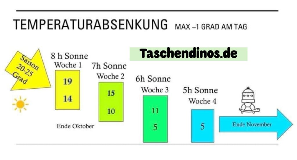 Es empfiehlt sich, zu Beginn täglich abzusenken und dann die Tiere einige Tage bei der neuen Temperatur ankommen zu lassen.