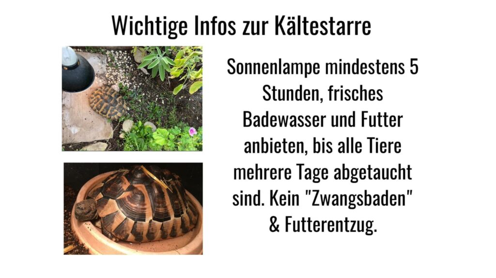 Maurische Landschildkröten (TGI) aus den südlichen Herkunftsgebieten können gemäß dem Klima im Habitat etwas langsamer abgesenkt werden, da sie in der Regel auch kürzer starren als Griechische Landschildkröten: