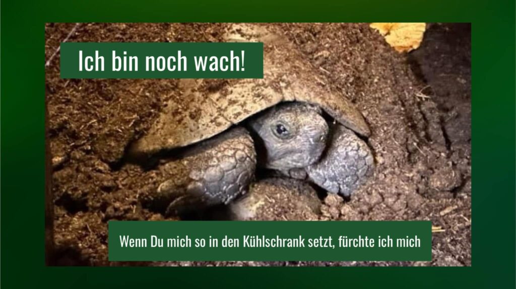 Ein zu frühes Umsetzen von Tieren, die nur „ruhen“ und noch nicht wirklich starren, bedeutet großen Stress und kann im schlimmsten Fall zu Kreislaufproblemen führen. Häufig finden solche Tiere gar nicht mehr in die Winterstarre und wachen im Kühlschrank wieder auf – damit wäre die Starre in der Regel gescheitert, oder zumindest deutlich vertagt.