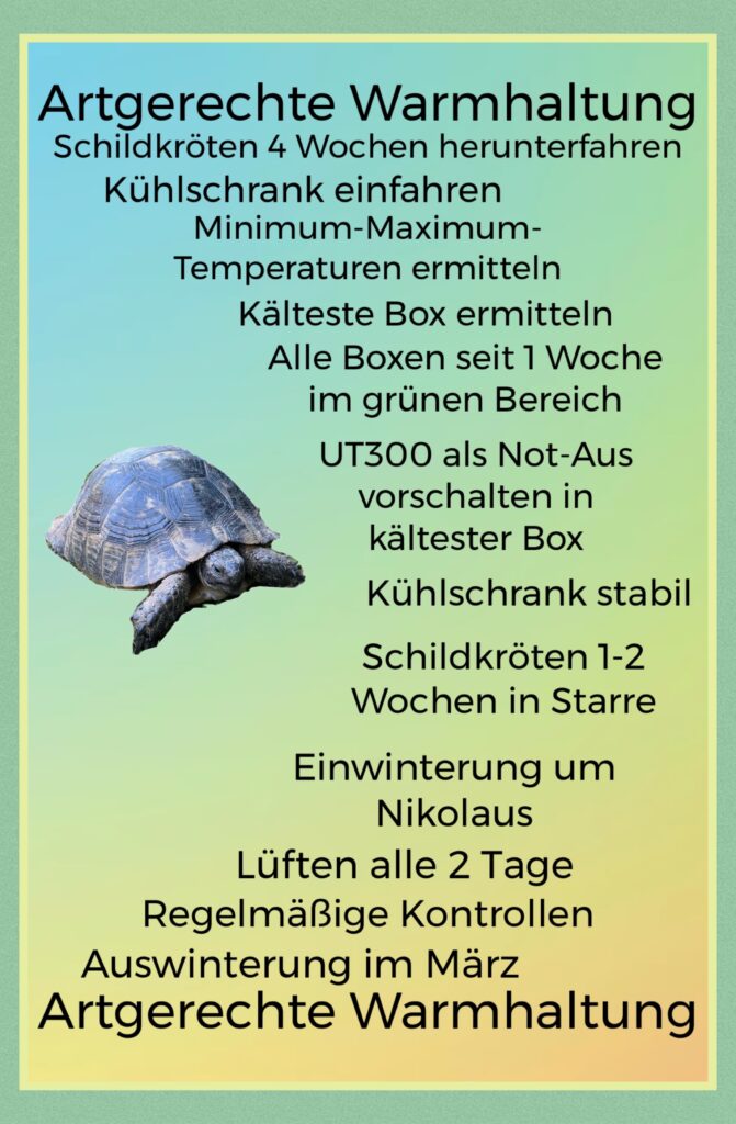Erst wenn alles über mehrere Tage stabil läuft, und die Schildkröten seit 1-2 Wochen im Frühbeet im Temperaturbereich dauerhaft unter 8 Grad starren, kann die Einwinterung der Schildkröten erfolgen. Hier geht es zur Checkliste Einwinterung.